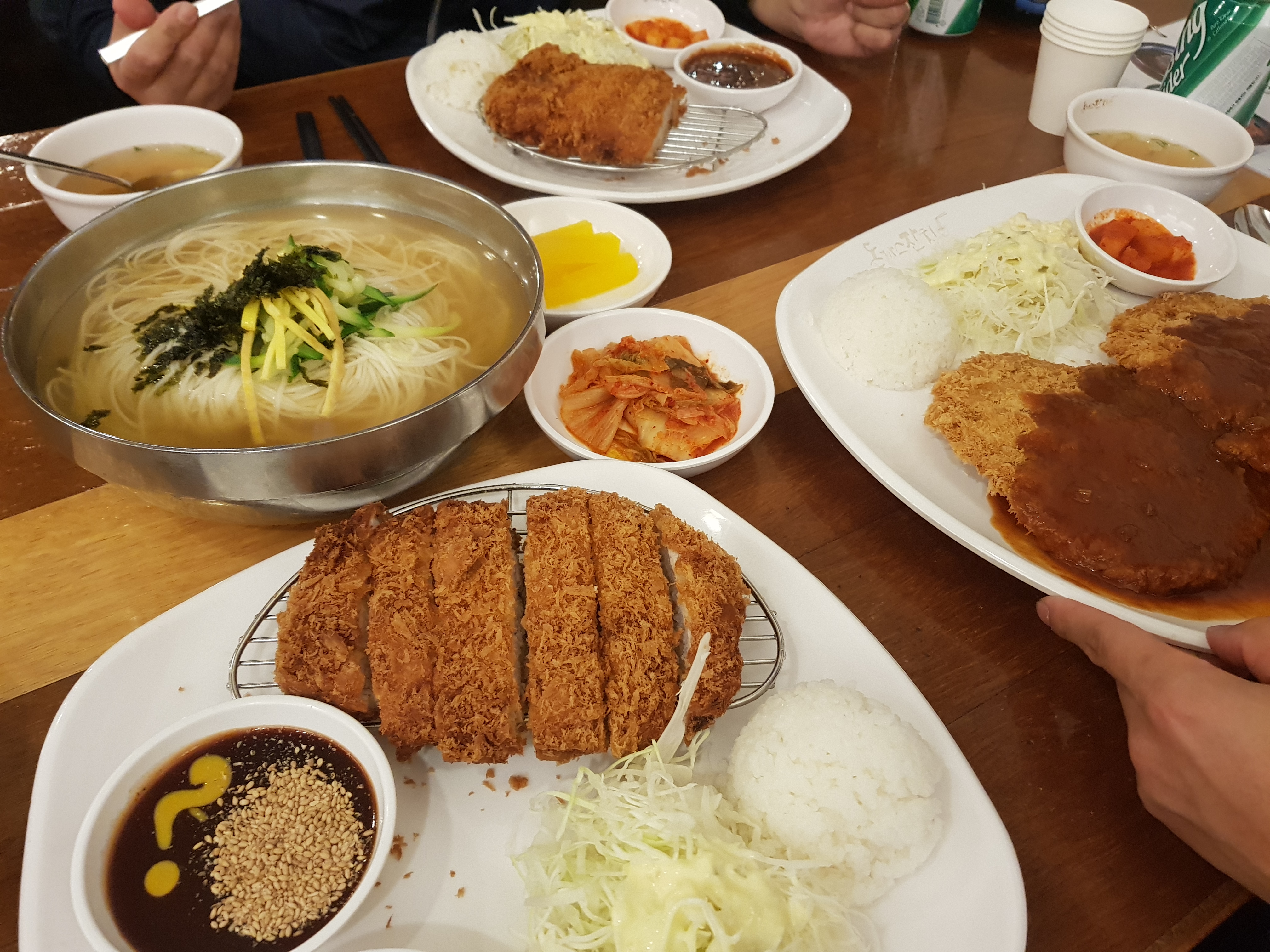 돈까스 잔치는 일단 메뉴를 시키시고 숟가락, 젓가락 등은 셀프입니다. 가지러 가시면 되겠구요. 메뉴는 고르시고 직원들에게 안내해주시면 빠르게 안내해주실거에요.!! 돈까스 잔치에는 많은 왕돈까스, 치즈뜸뿍돈까스, 돈비국수, 돈까스카레, 퉁퉁돈까스 등이 있는데요. 일단 치즈뜸뿍돈까스는 최애 메뉴겠구요. 잔치국수가 정말 일품입니다, 돈까스 따로 안드신다면 돈잔국수(돈까스 잔치국수)를 드시는걸 추천드리구요! 퉁퉁돈까스도 양은 생각보단 많진 않지만 돈까스 두꺠가 정말 두껍꾸 깔끔한 식사한끼를 하실 수 있으실거에요. 둘이오면 돈까스 하나 시키고 국수 한~두개 시키시면 딱 되지 않을까 싶네요!
