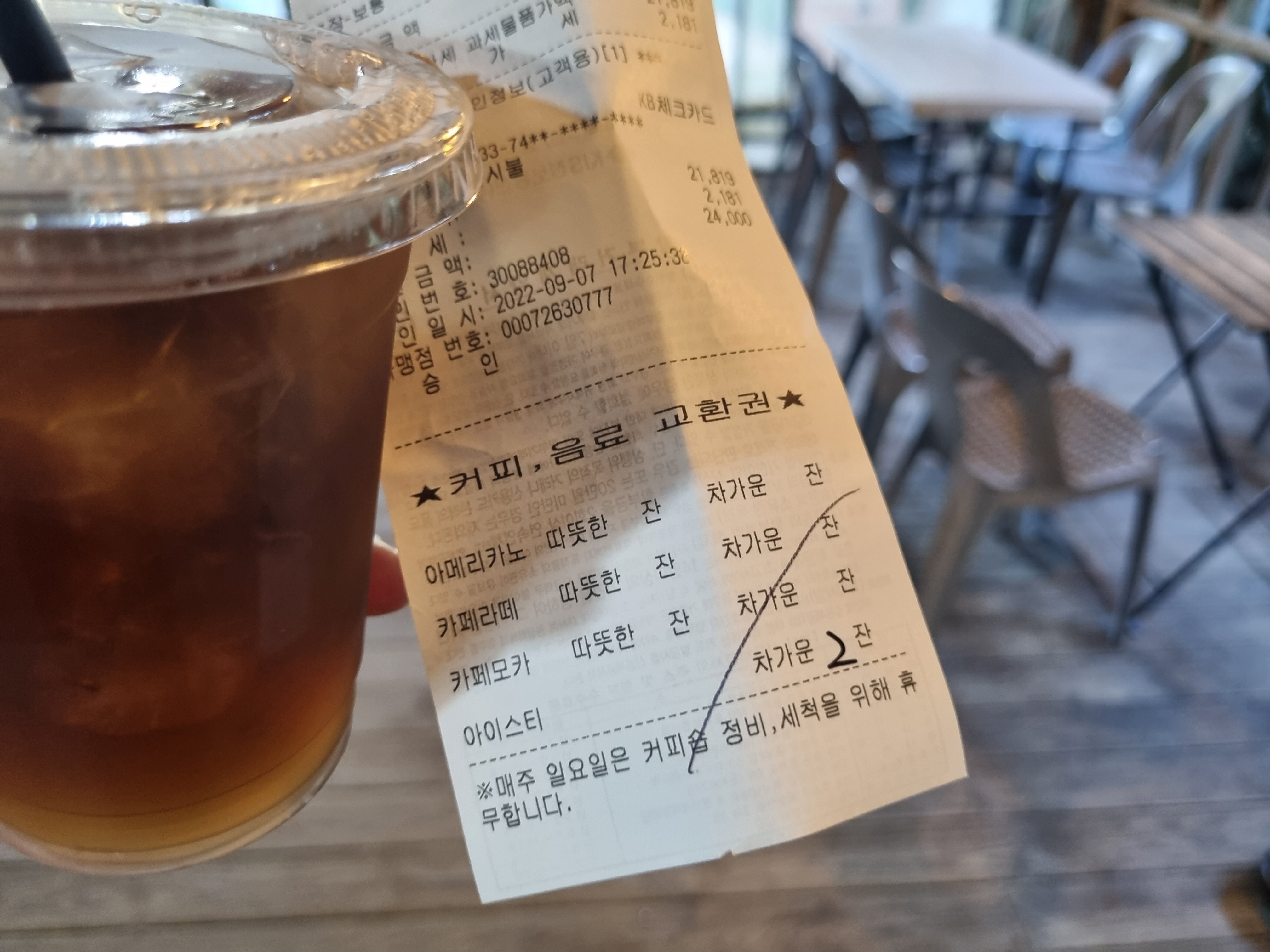 그리고 참고로 일요일은 카페를 열지 않기 떄문에 음료 서비스를 받을 수 없다!! 참고하시길!!