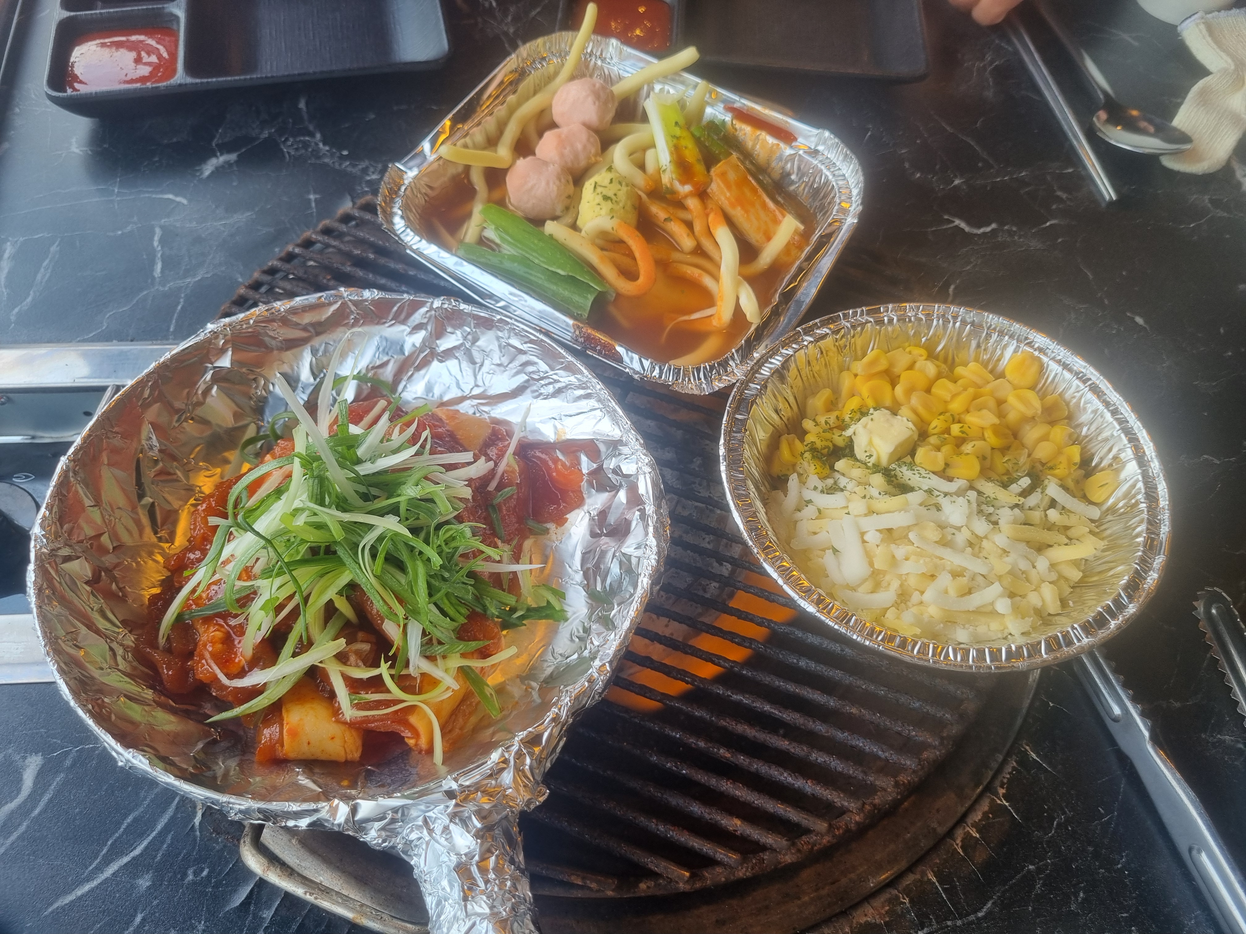 오이도하면 조개구이 식당이 엄청 많은데 몇군데 다녀보긴 했지만 개인적으로 조개포차가 맘에 들어서 오이도가면 조개포차만 가게 되는데요! 저 위에 나오는 것이 떡볶이랑 제육, 치즈콘은 기본적으로 나오는 메뉴이고 저것도 별미!1 그리고 네이버예약하면 사진은 없지만 멘뷰샤 와 버터새우구이가 나오기도 하니 참고하세요! 네이버 예약은 그냥 시간 예약언제든 자유롭게 가능하니 하면 좋을듯!