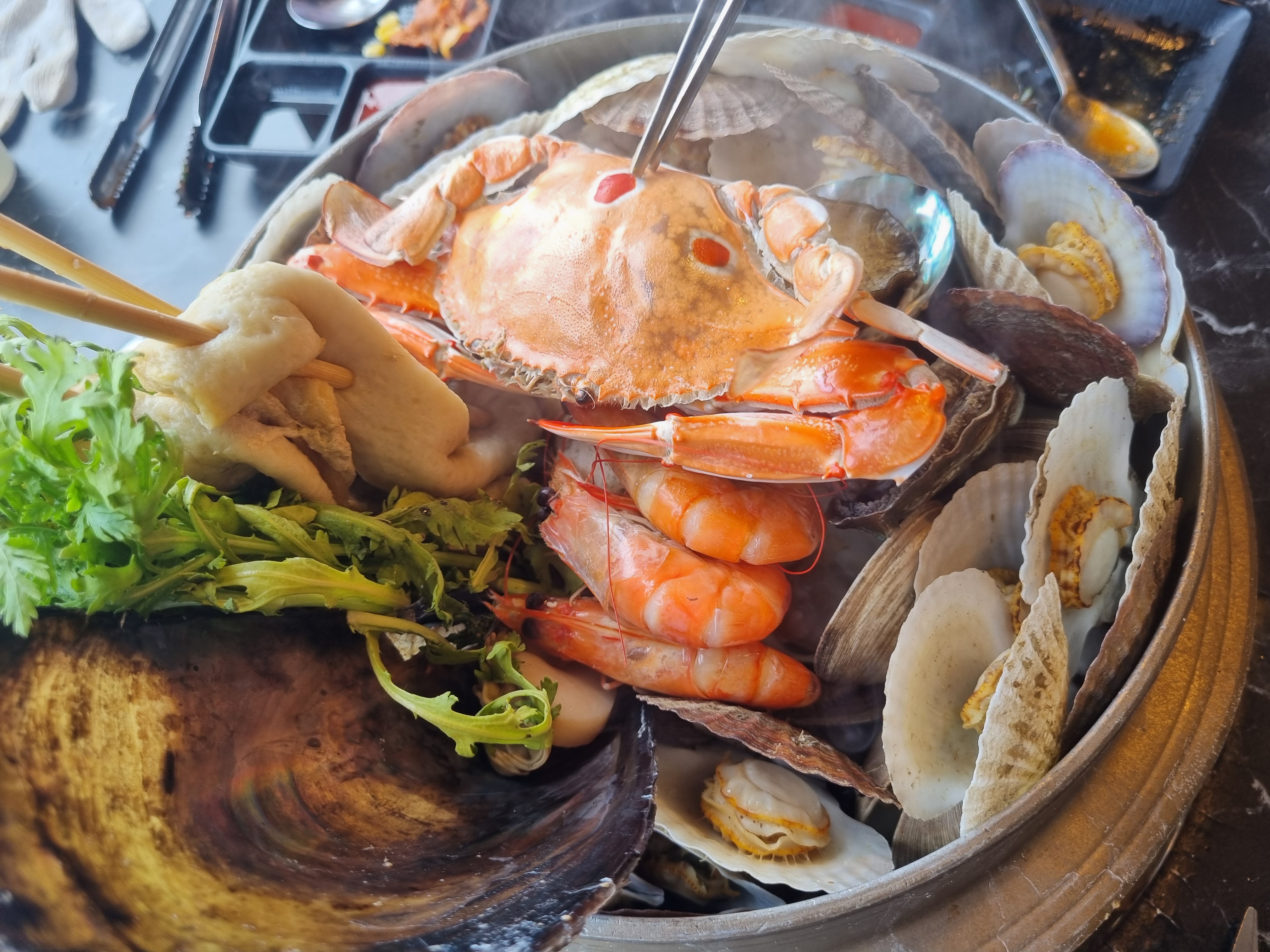 제가 구이는 많이 먹어봤고 역시나 조개구이는 맛있지만 여름이기도하고 잘 식중독도 생각해보면 조개찜도 괜찮다고 생각이 되요, 예전에는 조개포차의 조개찜이 2개종류가? 있었는데 대하찜? 가리비찜?나눠 있던것 같은데 지금은 가마솥 명품조개찜 하나로 통일이 되었더라구요!!! 크기에 따라 3가지 소, 중 , 대가 있는데요 소의 경우 가격이 85,000원, 중의 경우 95000원, 대의 경우 105,000원 입니다 제가 중, 대 다 먹어봤는데 소의 경우 2인분?정도의 양이라고 하시더라구요. 저 사진은 이번에 먹은 중 95000원입니다. 작년인가? 105,000원짜리 먹었었는데 문어도 한마리 올라가 있었어여!! 지금도 아마 올라가있겠죠? 조개구이는 무한이고 조개찜은 리필은 안되지만 조개의 양도 상당하고 라면은 무한으로 먹을수 있으니 배불리 드실 수 있으실거에요. 가리비는 30~40개? 백합은 30~40개?들어간 기분이었구요 새우도 4~5마리? 전복도 2~3개?정도 들어가 있어여 많으드시는 3분이나 4분이 온다면 대짜리 시키고 하셔야할 것 같아요! 저는 개인적으로 조개구이 좋아해서 저 중짜리도 혼자 다먹을 수 있긴 했지만 !!